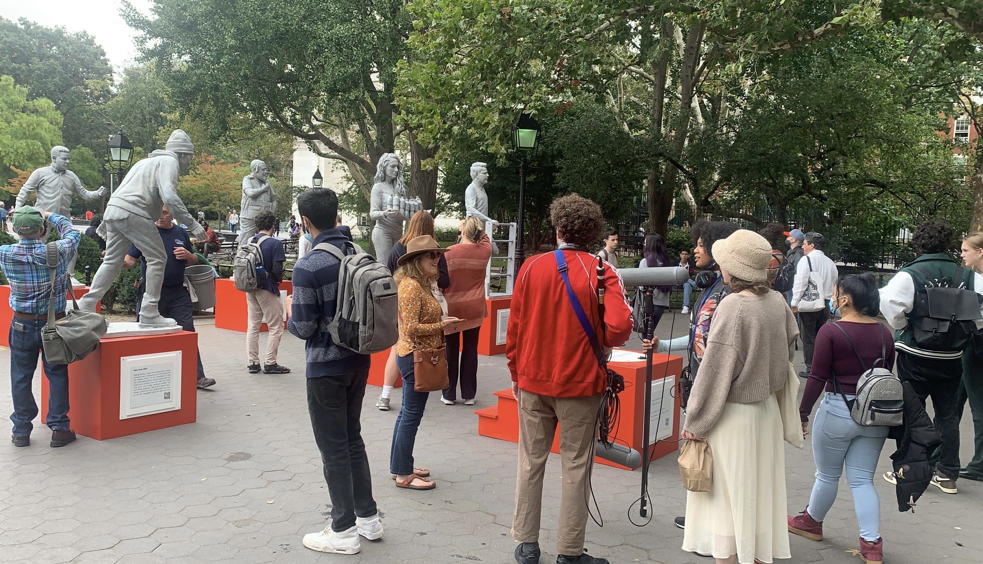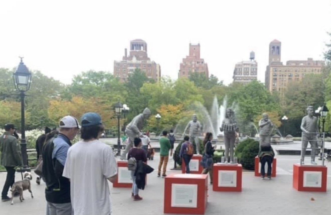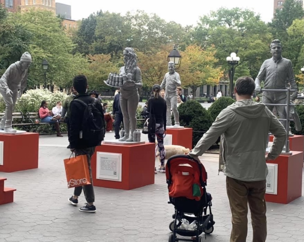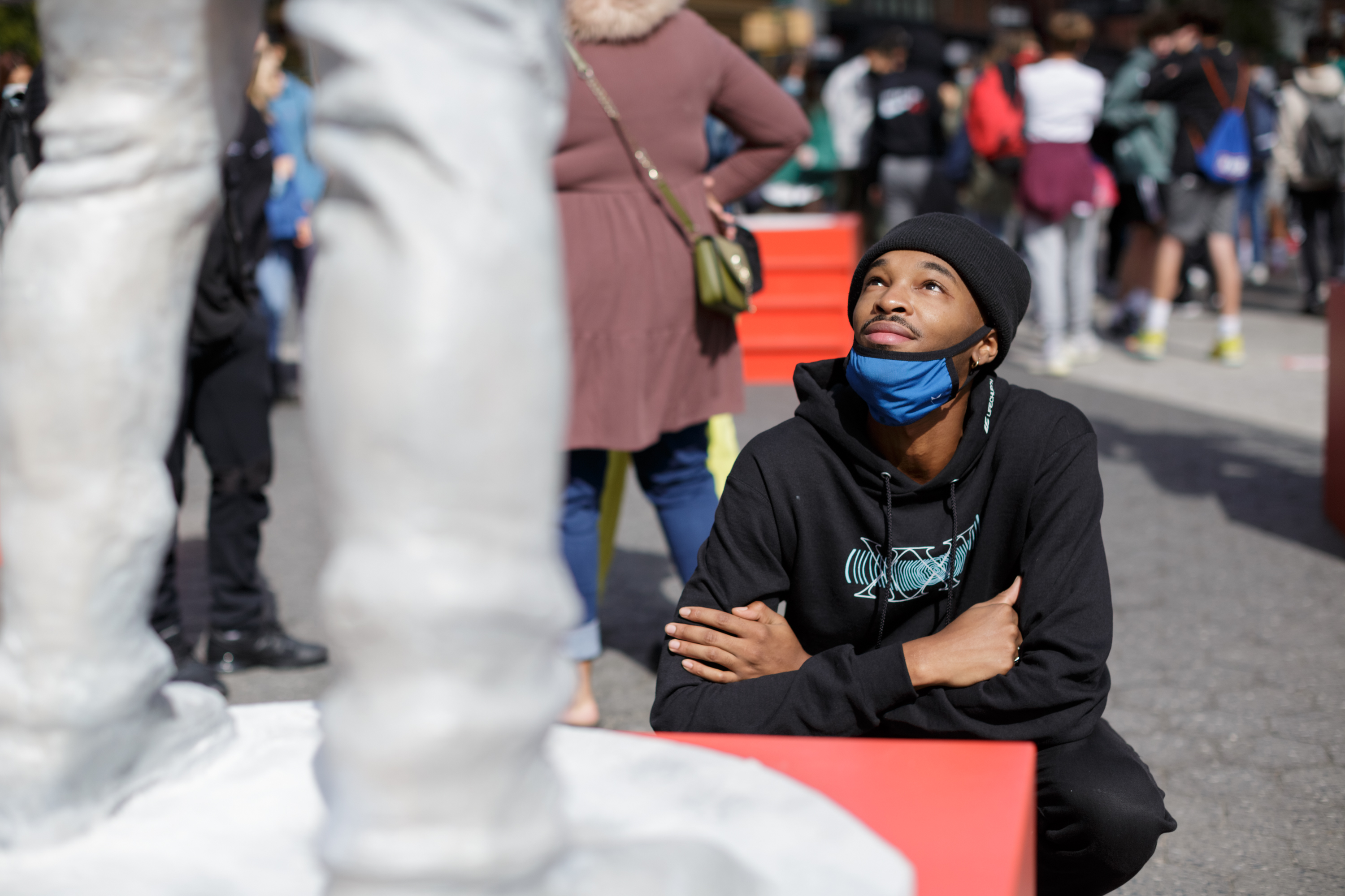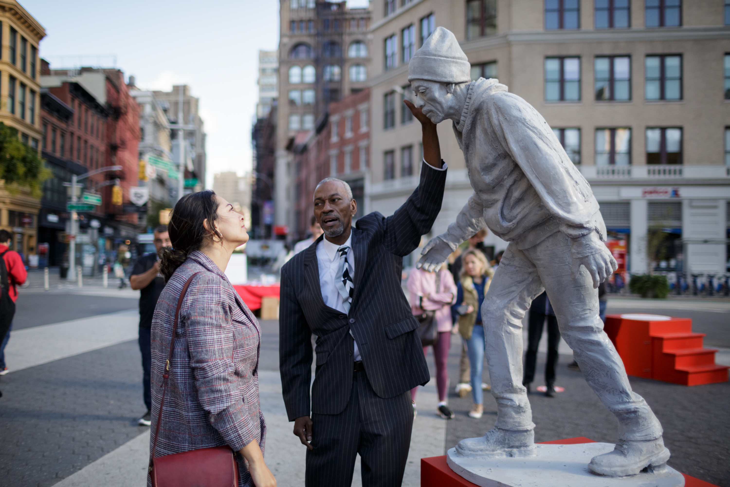 These five “Protector monuments” reclaim the public space for all of us—people of color, minorities, refugees, immigrants and women. The monuments are on pedestals to celebrate and elevate them as individuals we can collectively look up to.