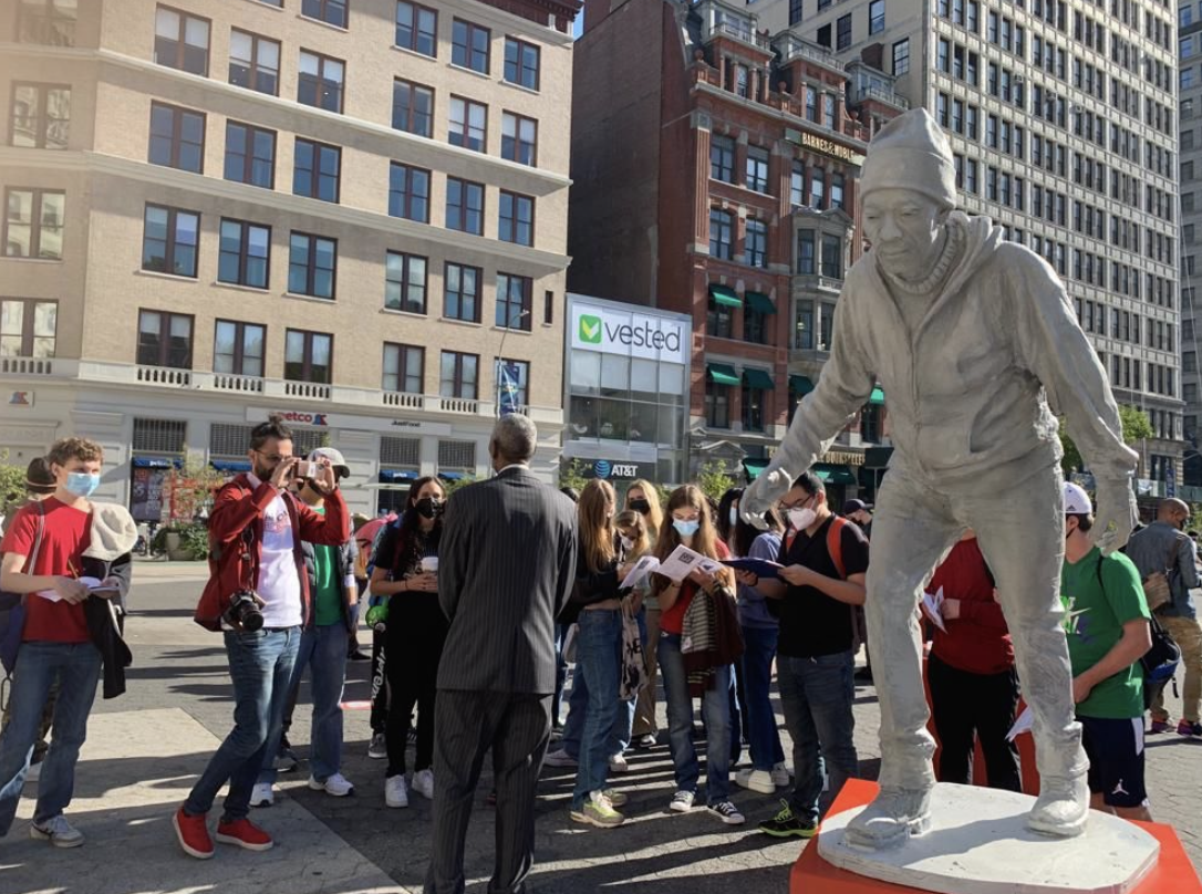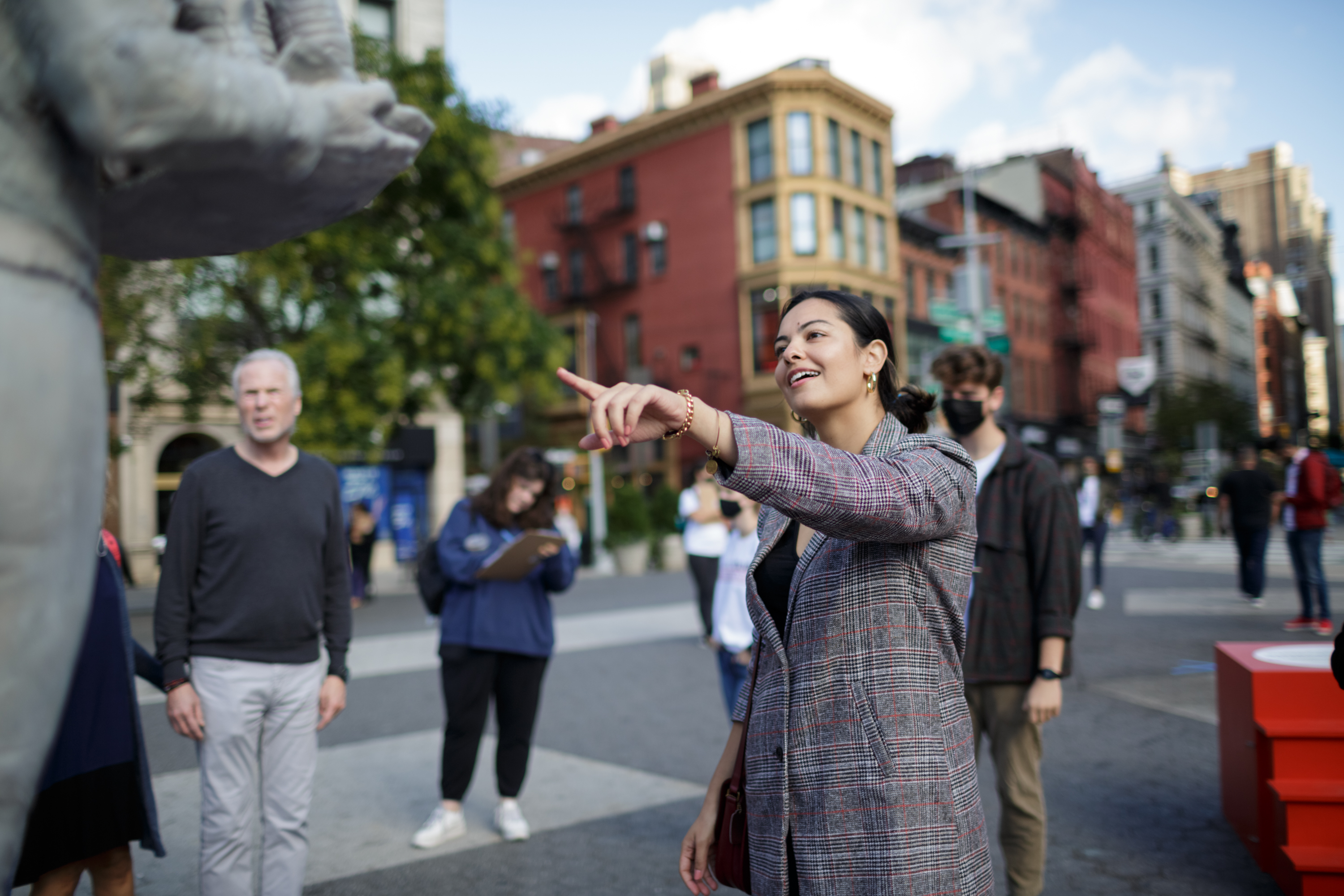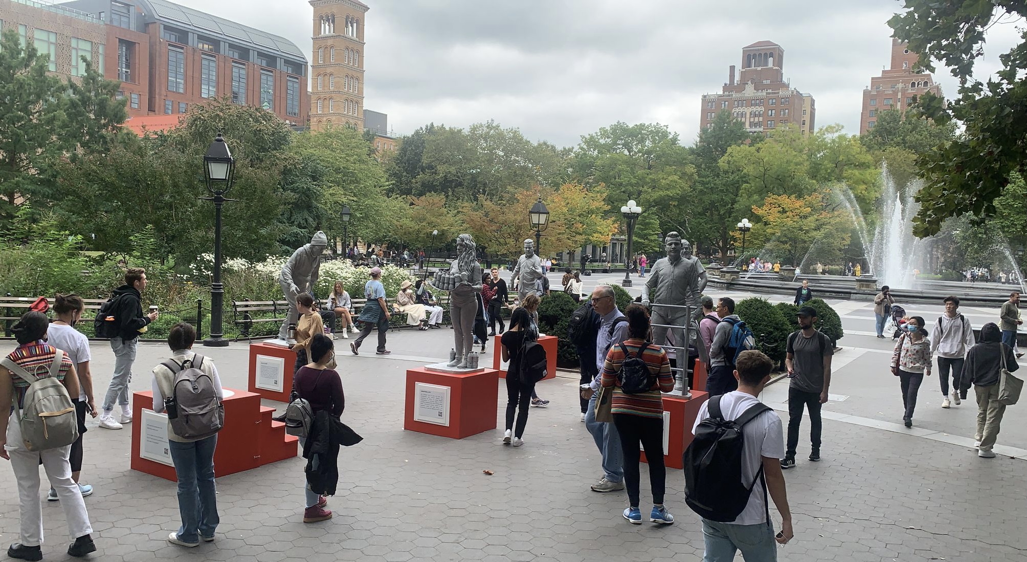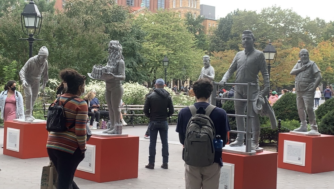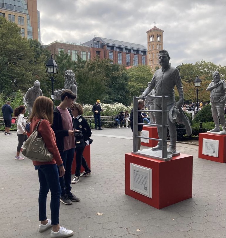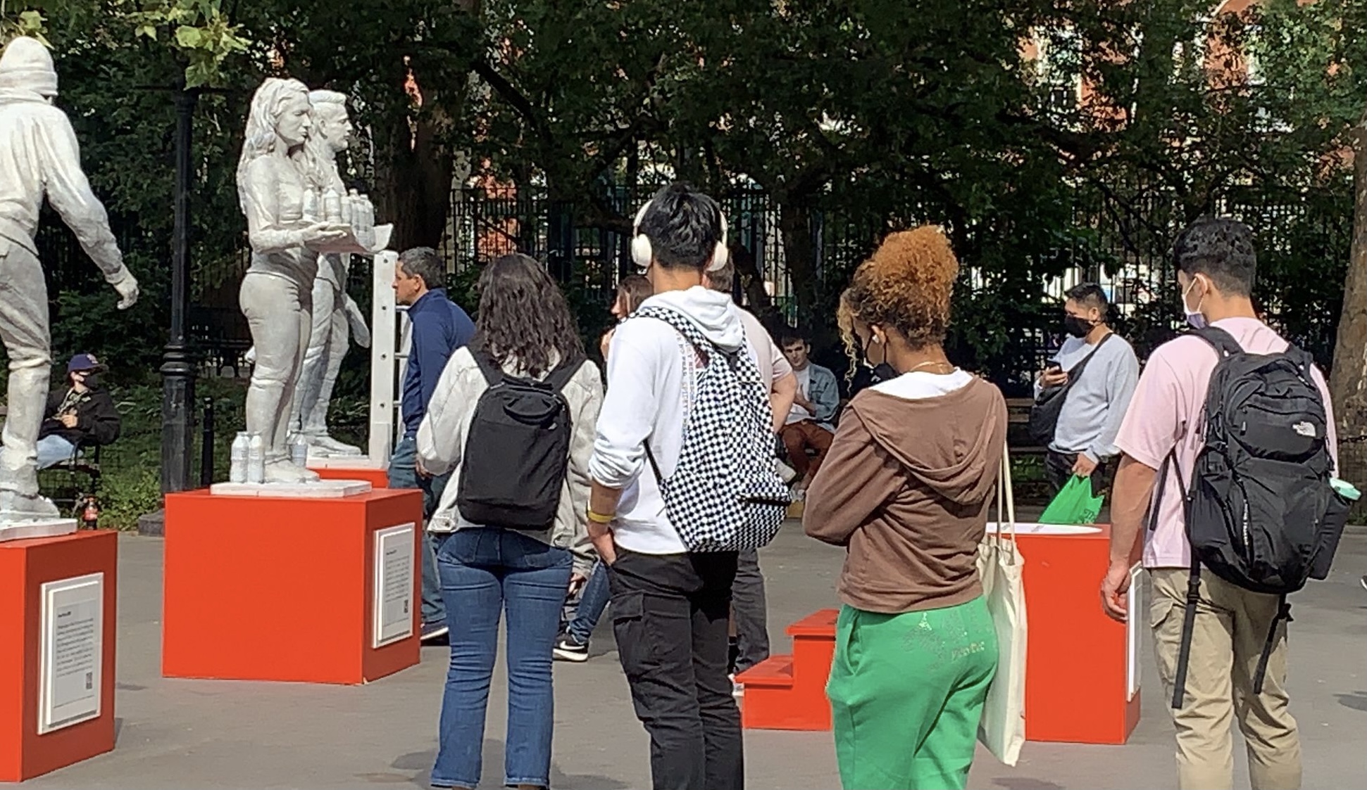These five “Protector monuments” reclaim the public space for all of us—people of color, minorities, refugees, immigrants and women. The monuments are on pedestals to celebrate and elevate them as individuals we can collectively look up to.